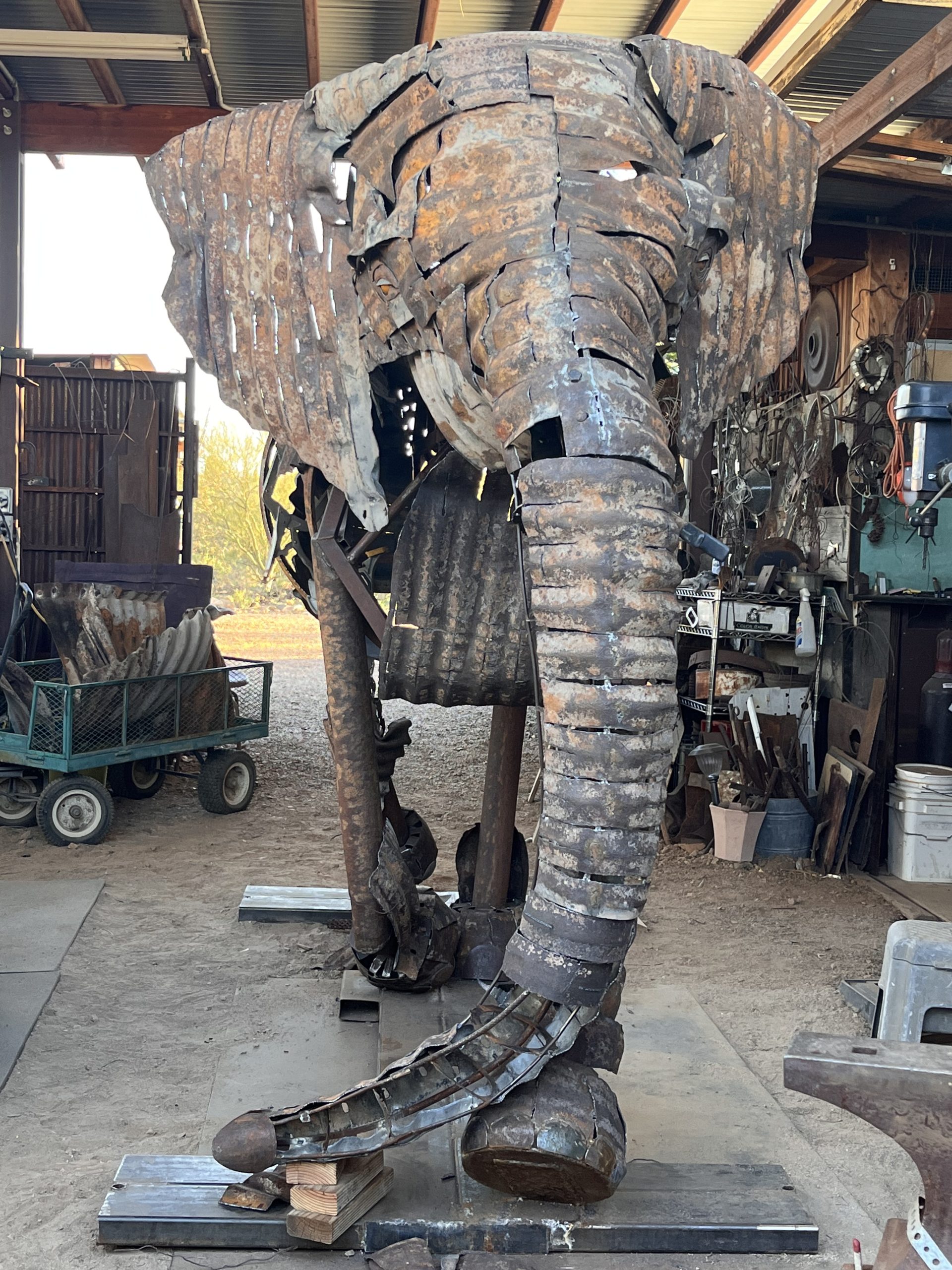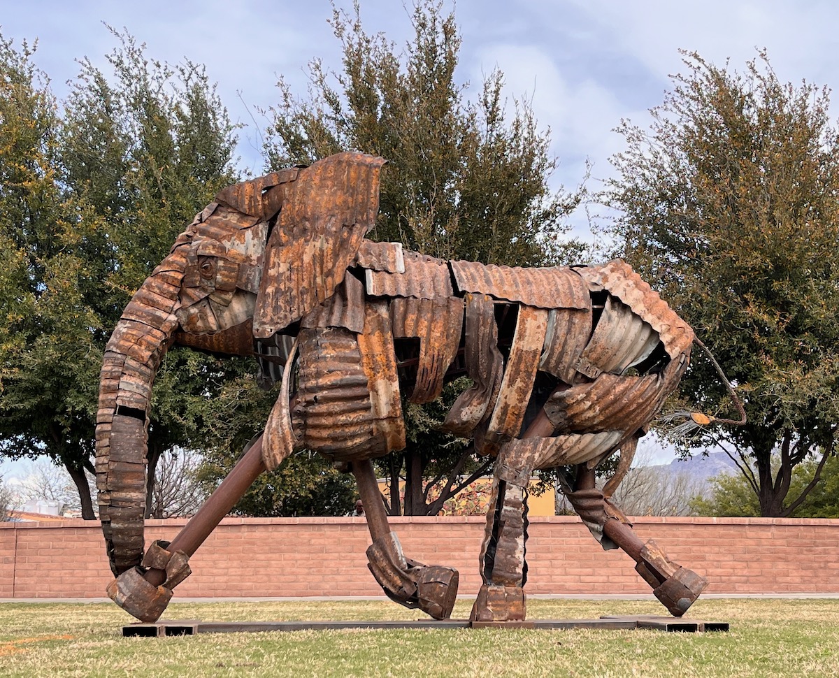 La Profesora was made tuskless to indicate a change from 2% to 50% incidence in Kenya herds.    Shown at Sculpture Tucson 2023.